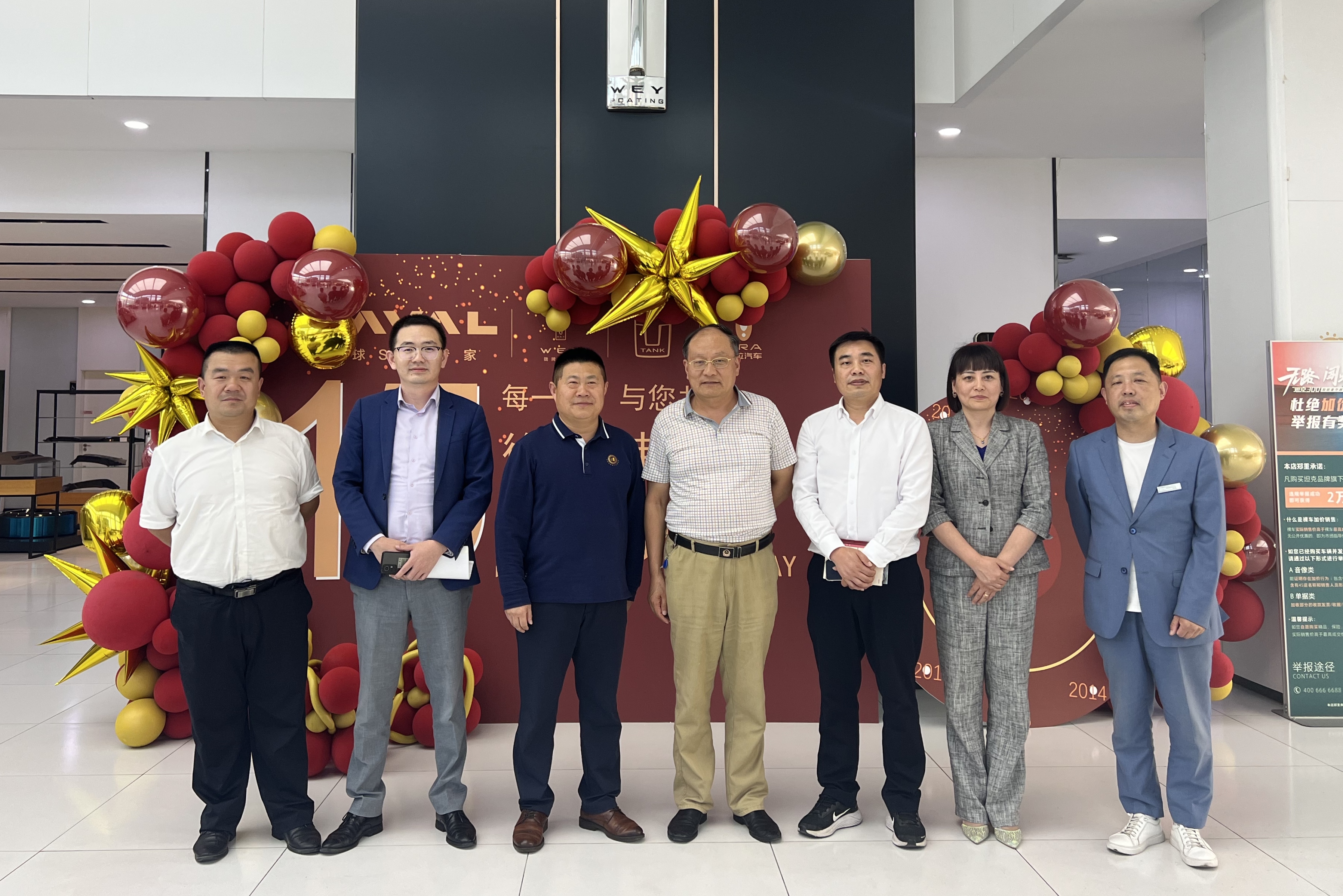 圖為:拜訪省汽協(xié)顧問、徐州新成二手車市場董事長朱興成(左四)